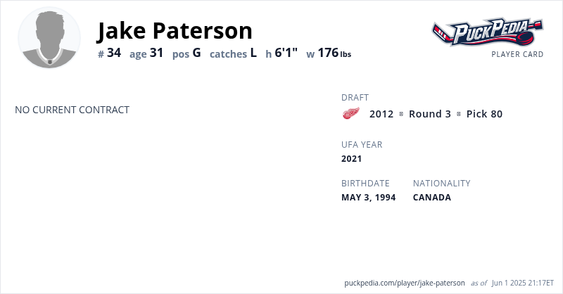 | 2015-16 | 21 | AHL | Grand Rapids Griffins | 2 | 3.11 | 0.928 | 0 | |||||||||||||||||||||||
