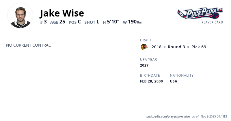 | 2025-26 | 25 | AHL | Colorado Eagles | 7 | 1 | 0 | 1 | 0 | ||||||||||||||||||||||