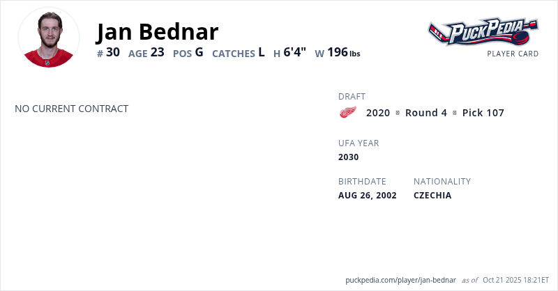 | 2023-24 | 21 | AHL | Grand Rapids Griffins | 0 | 0.000 | 0 | ||||||||||||||||||||||||