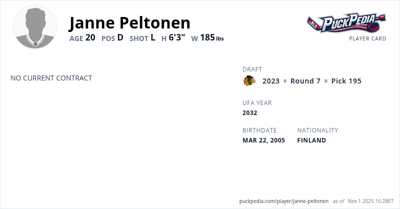| 2021-22 | 16 | International-Jr | Finland U17 (all) | 6 | 0 | 1 | 1 | 4 | ||||||||||||||||||||||