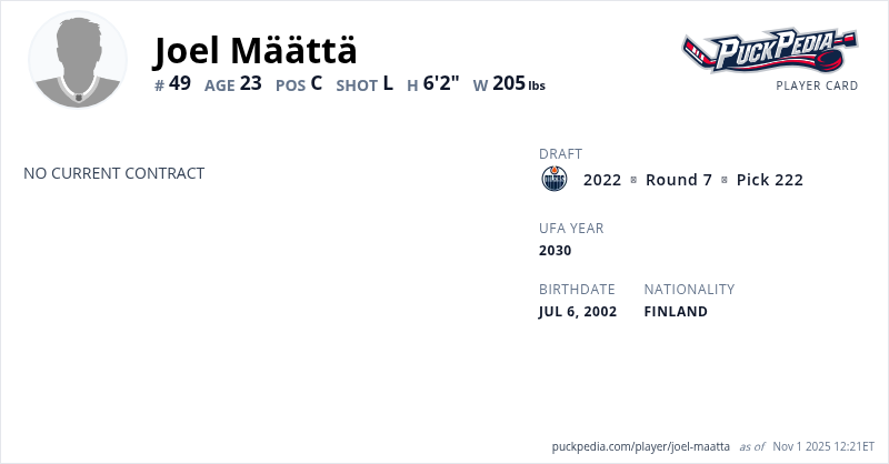 | 2021-22 | 19 | International-Jr | Finland U20 (all) | 3 | 0 | 2 | 2 | 4 | ||||||||||||||||||||||