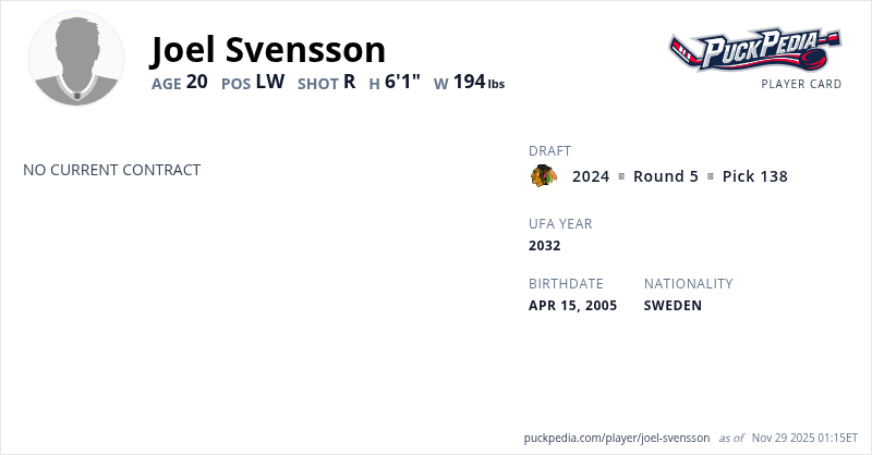 | 2021-22 | 16 | International-Jr | Sweden U17 (all) | 4 | 0 | 0 | 0 | 2 | ||||||||||||||||||||||