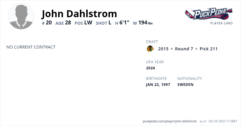 | 2023-24 | 26 | HockeyAllsvenskan | Djurgårdens IF | 11 | 1 | 1 | 2 | 0 | ||||||||||||||||||||||