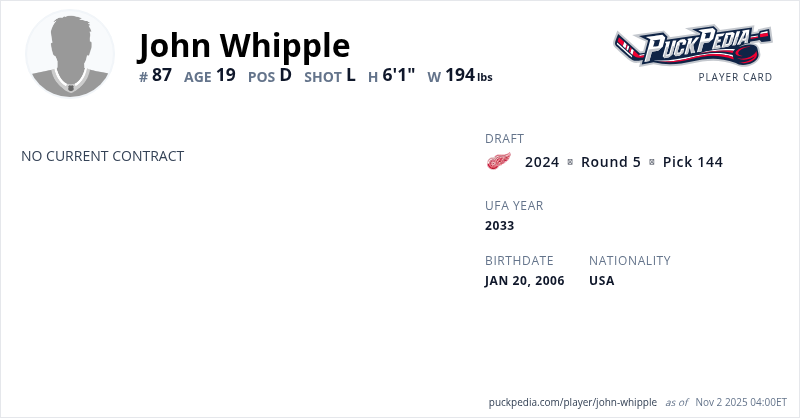 | 2022-23 | 16 | USHL | USNTDP Juniors | 39 | 3 | 6 | 9 | 62 | Playoffs | 3 | 0 | 0 | 0 | 0 | ||||||||||||||||