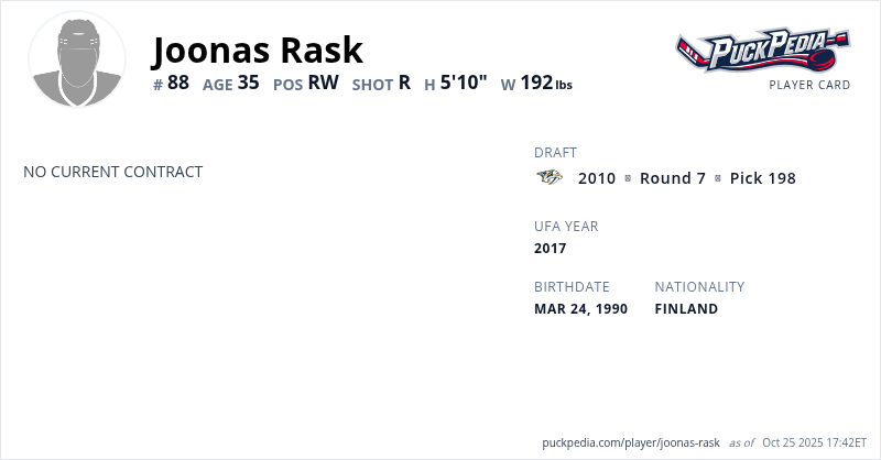 | 2012-13 | 22 | NHL | Nashville Predators | 2 | 0 | 1 | 1 | 0 | ||||||||||||||||||||||