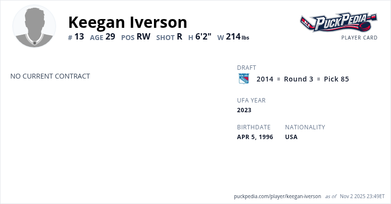 | 2024-25 | 28 | ECHL | Tulsa Oilers | 8 | 2 | 2 | 4 | 16 | Playoffs | 6 | 1 | 1 | 2 | 0 | ||||||||||||||||