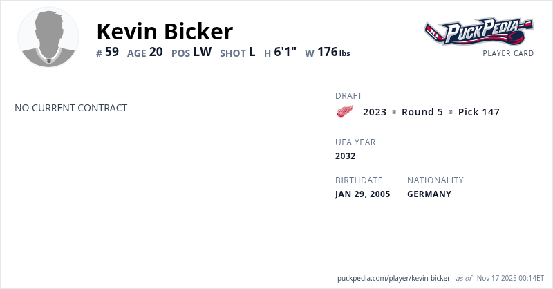 | 2024-25 | 19 | DEL | Löwen Frankfurt | 20 | 0 | 5 | 5 | 15 | Playoffs | 2 | 0 | 0 | 0 | 0 | ||||||||||||||||