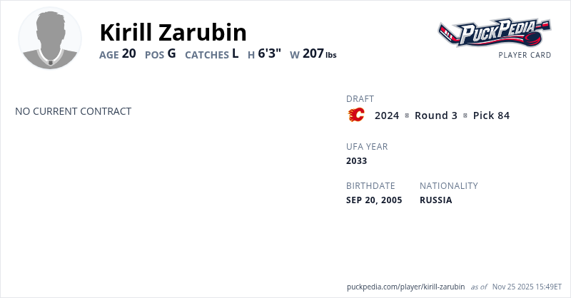 | 2023-24 | 18 | MHL | AKM-Yunior Tula Region | 16 | 4.32 | 0.902 | 0 | |||||||||||||||||||||||
