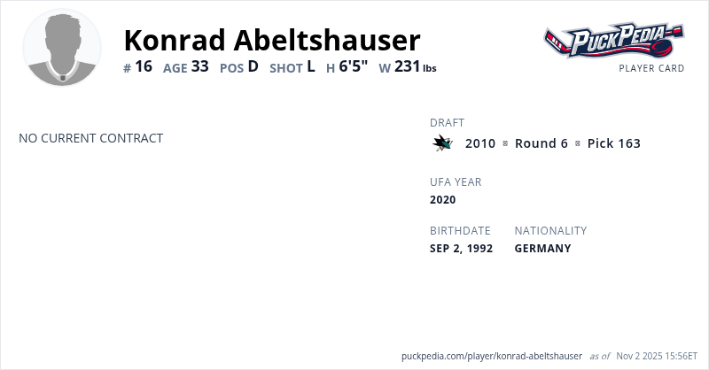 | 2021-22 | 29 | DEL | EHC München | 50 | 3 | 22 | 25 | 14 | Playoffs | 8 | 1 | 4 | 5 | 0 | ||||||||||||||||