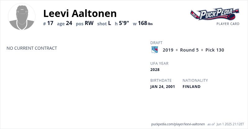 | 2020-21 | 19 | Liiga | KalPa | 22 | 1 | 4 | 5 | 4 | ||||||||||||||||||||||
