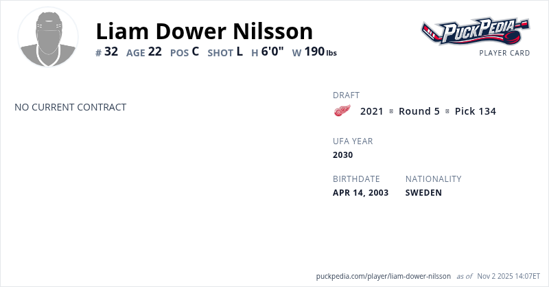 | 2020-21 | 17 | SHL | Frölunda HC | 5 | 0 | 0 | 0 | 25 | Playoffs | 1 | 0 | 0 | 0 | 0 | ||||||||||||||||