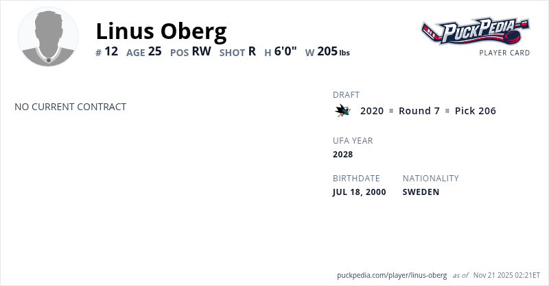 | 2021-22 | 21 | SHL | Örebro HK | 52 | 17 | 9 | 26 | 18 | Playoffs | 8 | 3 | 1 | 4 | 0 | ||||||||||||||||