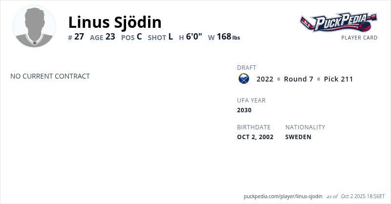 | 2022-23 | 20 | SHL | Rögle BK | 52 | 1 | 6 | 7 | 4 | Playoffs | 9 | 0 | 0 | 0 | 0 | ||||||||||||||||