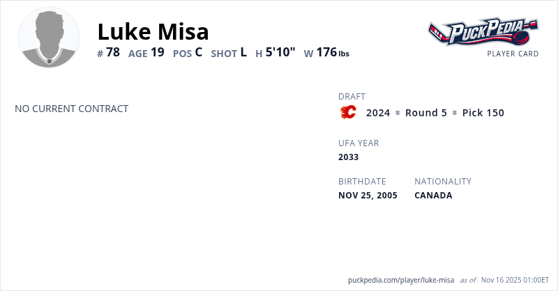 Misa was the 150th overall pick by the Calgary Flames in the 2024 NHL Entry Draft on Saturday.
