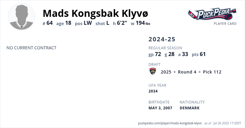 | 2024-25 | 17 | International-Jr | Denmark U20 (all) | 3 | 1 | 2 | 3 | 0 | ||||||||||||||||||||||