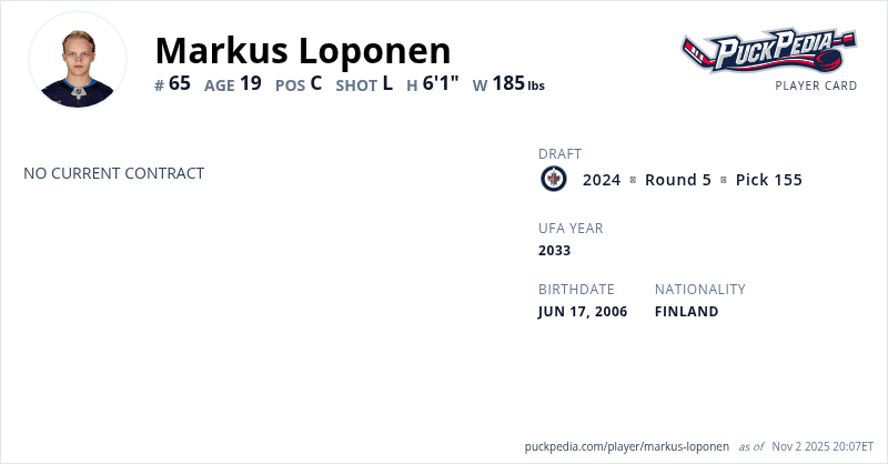 | 2025-26 | 19 | International-Jr | Finland U20 (all) | 5 | 4 | 0 | 4 | 6 | ||||||||||||||||||||||