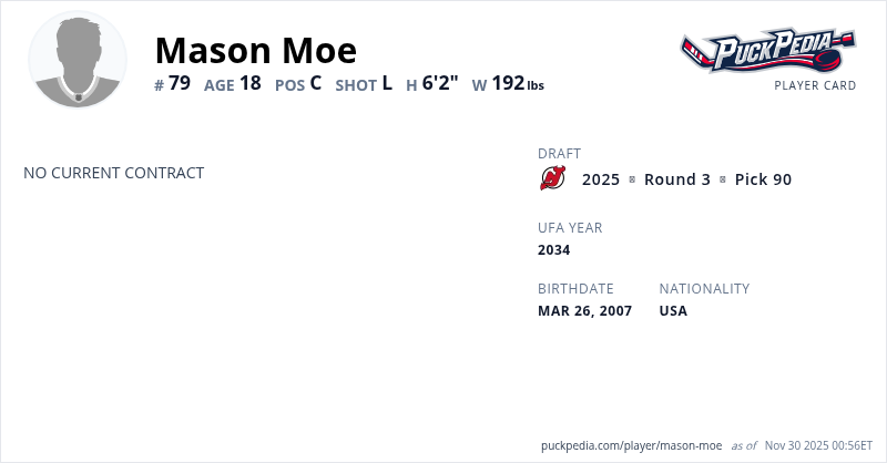 | 2024-25 | 17 | USHL | Madison Capitols | 51 | 17 | 26 | 43 | 26 | Playoffs | 6 | 5 | 1 | 6 | 0 | ||||||||||||||||