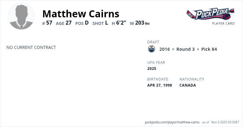 | 2015-16 | 17 | OJHL | Georgetown Raiders | 46 | 9 | 24 | 33 | 42 | Playoffs | 22 | 3 | 16 | 19 | 0 | ||||||||||||||||