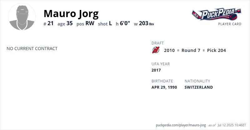 | 2020-21 | 30 | NL | HC Fribourg-Gottéron | 43 | 4 | 7 | 11 | 6 | Playoffs | 5 | 1 | 0 | 1 | 0 | ||||||||||||||||