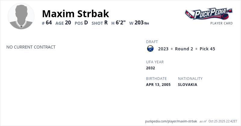 Strbak was selected 45th overall by the Buffalo Sabres in the 2023 NHL Entry Draft on Thursday.
