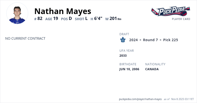 | 2023-24 | 17 | WHL | Spokane Chiefs | 68 | 1 | 15 | 16 | 58 | Playoffs | 4 | 0 | 0 | 0 | 0 | ||||||||||||||||