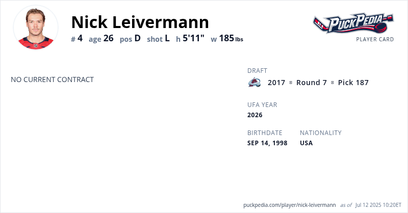 | 2024-25 | 26 | AHL | Hershey Bears | 37 | 3 | 13 | 16 | 12 | Playoffs | 4 | 0 | 0 | 0 | 0 | ||||||||||||||||