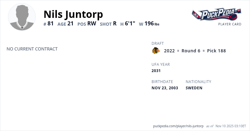 | 2019-20 | 16 | U18 Region | HV71 U18 | 21 | 3 | 6 | 9 | 10 | ||||||||||||||||||||||