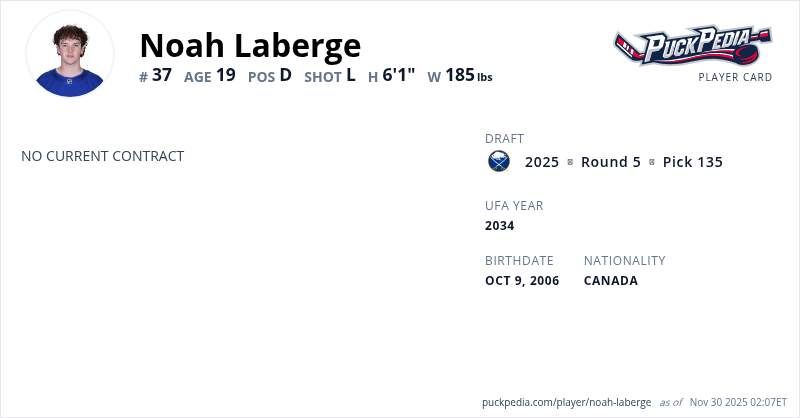 | 2024-25 | 18 | QMJHL | Acadie-Bathurst Titan | 63 | 12 | 23 | 35 | 50 | Playoffs | 5 | 0 | 2 | 2 | 0 | ||||||||||||||||