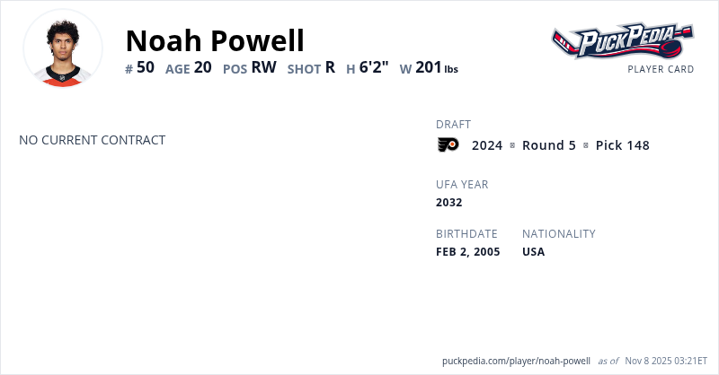 | 2024-25 | 19 | OHL | Oshawa Generals | 28 | 9 | 13 | 22 | 25 | Playoffs | 21 | 4 | 10 | 14 | 0 | ||||||||||||||||