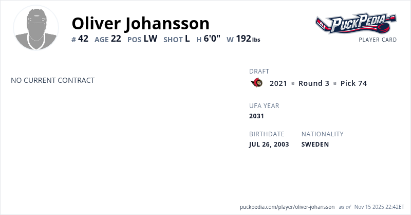 Johansson was drafted 74th overall by the Ottawa Senators at the 2021 NHL Draft on Saturday.