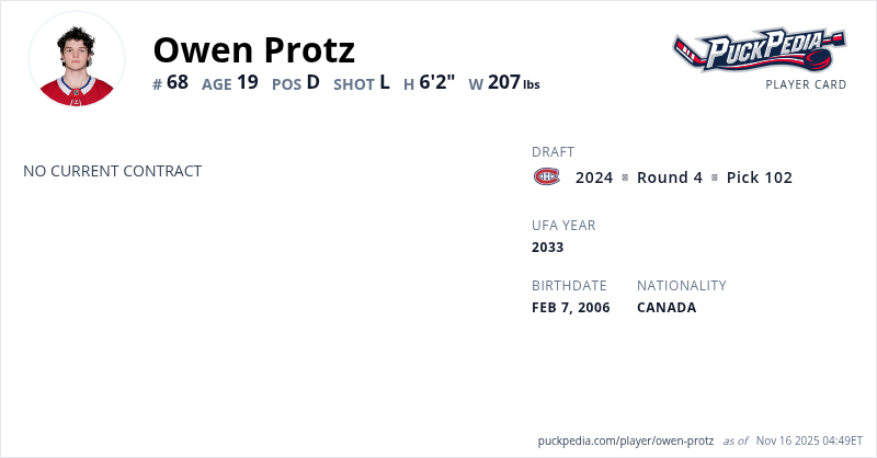 | 2023-24 | 17 | OHL | Sudbury Wolves | 36 | 1 | 6 | 7 | 25 | ||||||||||||||||||||||