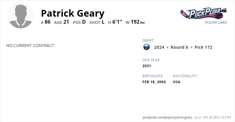 | 2020-21 | 16 | 16U AAA | Buffalo Jr. Sabres 16U AAA | 23 | 7 | 9 | 16 | 42 | ||||||||||||||||||||||