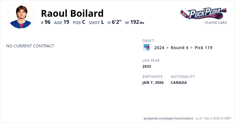 Boilard was the 119th overall pick by the New York Rangers in the 2024 NHL Entry Draft on Saturday.