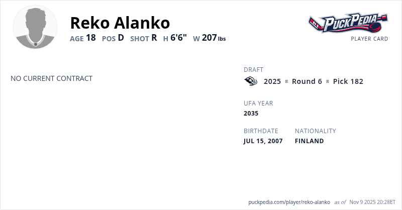 | 2025-26 | 18 | International-Jr | Finland U20 (all) | 3 | 0 | 0 | 0 | 2 | ||||||||||||||||||||||