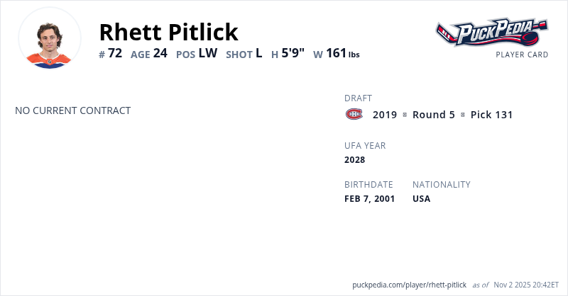 | 2024-25 | 23 | AHL | Bakersfield Condors | 6 | 0 | 6 | 6 | 0 | ||||||||||||||||||||||