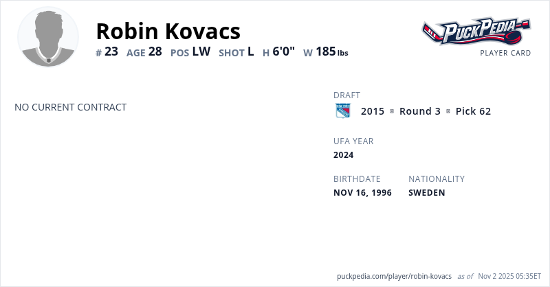 | 2025-26 | 29 | SHL | Linköping HC | 18 | 9 | 9 | 18 | 12 | ||||||||||||||||||||||