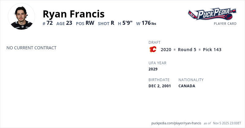 | 2021-22 | 20 | AHL | Stockton Heat | 4 | 0 | 0 | 0 | 0 | ||||||||||||||||||||||