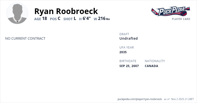 | 2024-25 | 17 | OHL | Niagara IceDogs | 64 | 41 | 46 | 87 | 18 | Playoffs | 5 | 3 | 3 | 6 | 0 | ||||||||||||||||