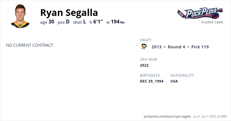 | 2016-17 | 22 | AHL | Wilkes-Barre/Scranton Penguins | 1 | 0 | 0 | 0 | 4 | ||||||||||||||||||||||