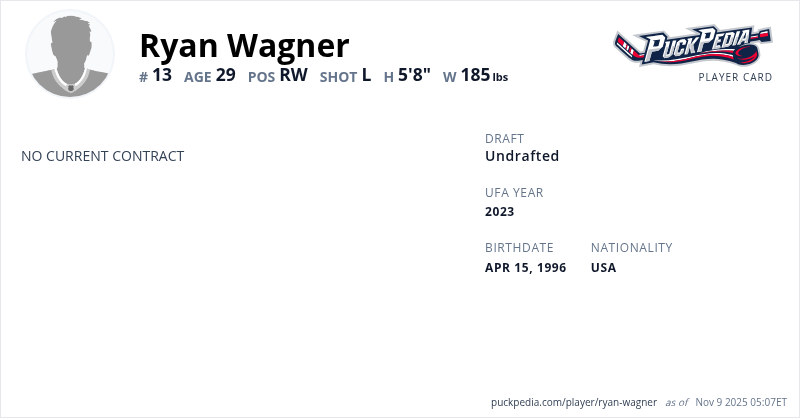 | 2025-26 | 29 | ECHL | Rapid City Rush | 10 | 4 | 9 | 13 | 2 | ||||||||||||||||||||||