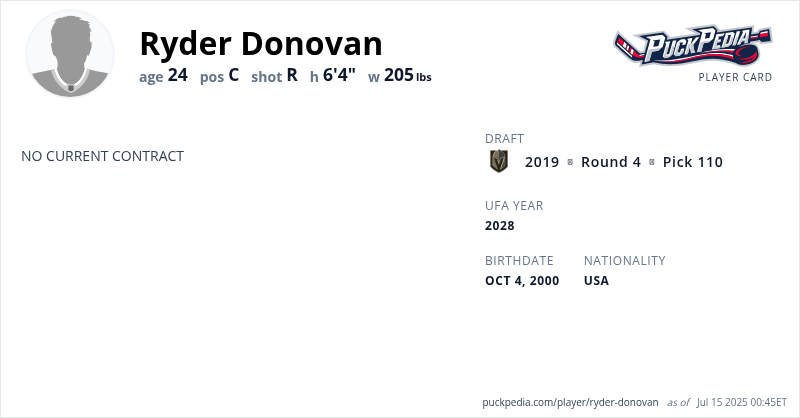 | 2017-18 | 17 | USHL | Dubuque Fighting Saints | 4 | 0 | 0 | 0 | 0 | Playoffs | 5 | 0 | 0 | 0 | 0 | ||||||||||||||||