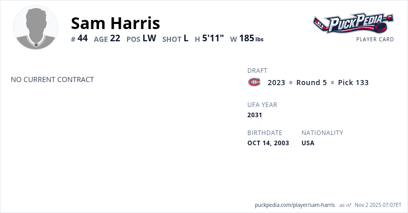| 2021-22 | 18 | USHL | Sioux Falls Stampede | 60 | 16 | 19 | 35 | 68 | ||||||||||||||||||||||