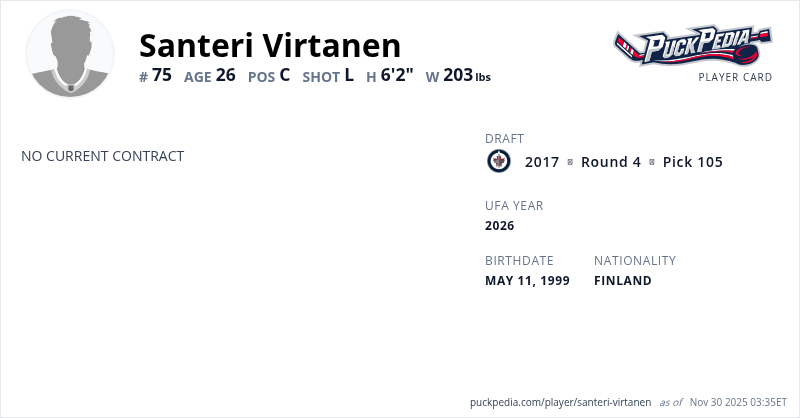 | 2022-23 | 23 | Liiga | Ilves | 43 | 4 | 9 | 13 | 10 | Playoffs | 12 | 3 | 2 | 5 | 0 | ||||||||||||||||