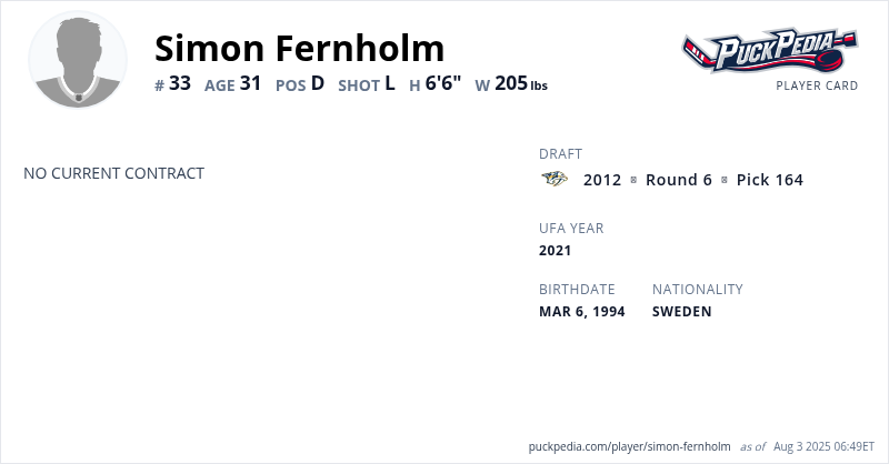 | 2020-21 | 26 | HockeyAllsvenskan | AIK | 26 | 1 | 6 | 7 | 8 | ||||||||||||||||||||||