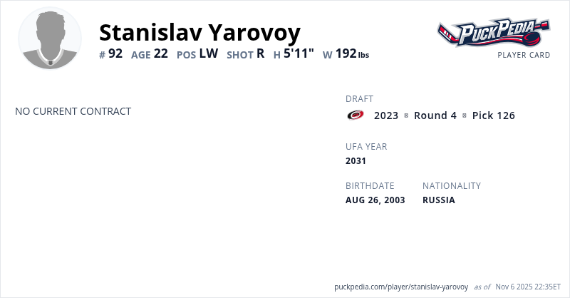 | 2025-26 | 22 | VHL | Khimik Voskresensk | 15 | 1 | 4 | 5 | 6 | ||||||||||||||||||||||
