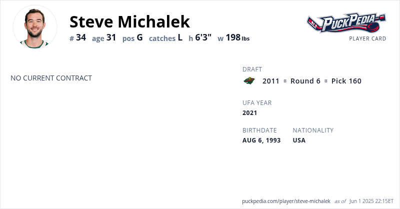 Steve Michalek is an Unrestricted Free Agent. His last contract was 1 year, $715,000 with a cap hit of $715,000 per season. It expired at the end of the 2017-18 season.
