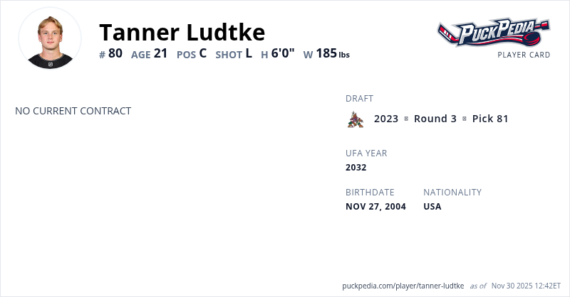 Ludtke was selected 81st overall by the Coyotes in the 2023 NHL Entry Draft on Thursday.
