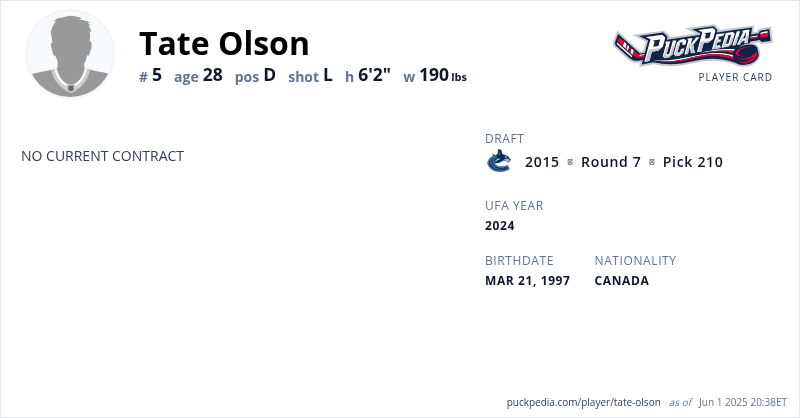 | 2016-17 | 19 | WHL | Prince George Cougars | 67 | 7 | 19 | 26 | 60 | Playoffs | 6 | 1 | 1 | 2 | 0 | ||||||||||||||||