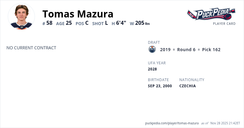 | 2024-25 | 24 | Czechia | BK Mladá Boleslav | 20 | 4 | 8 | 12 | 2 | Playoffs | 11 | 1 | 2 | 3 | 0 | ||||||||||||||||