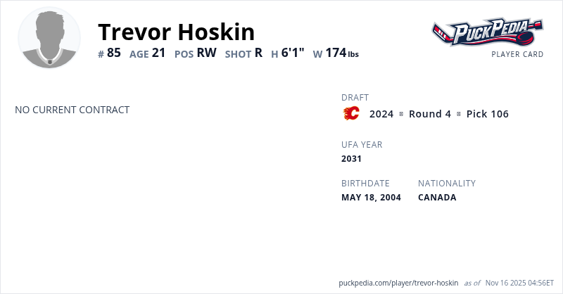 | 2025-26 | 21 | NCAA | Merrimack College | 10 | 4 | 8 | 12 | 0 | ||||||||||||||||||||||